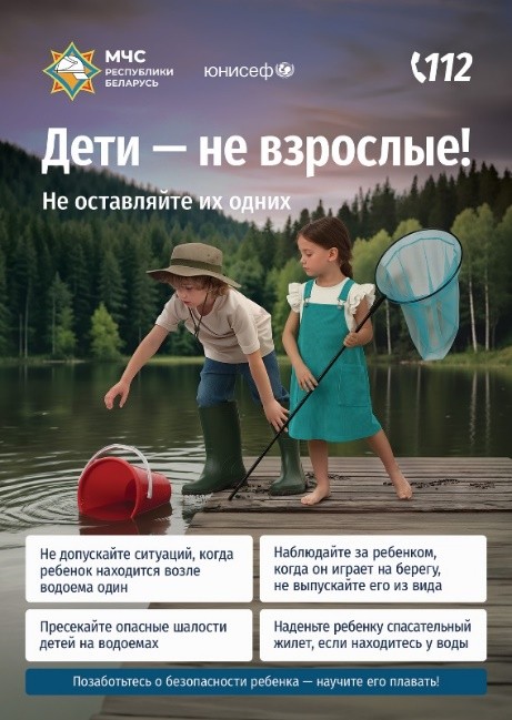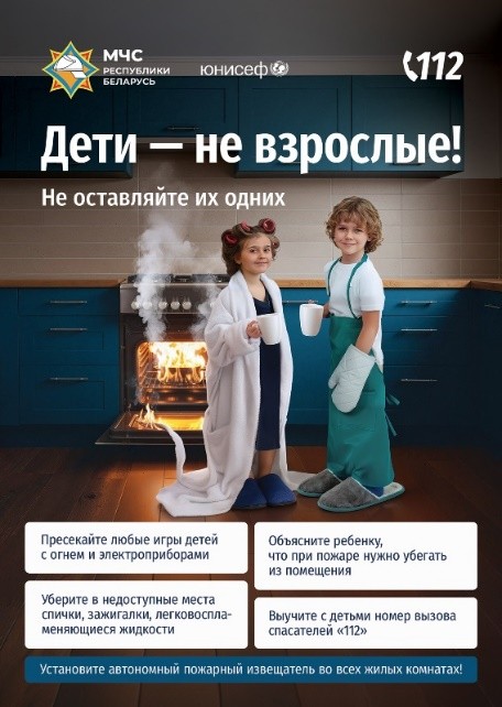 Чтобы привлечь внимание родителей к проблеме гибели и травматизма детей дошкольного и младшего школьного возраста на пожарах и водоемах, МЧС при поддержке  Представительства Детского Фонда ООН (ЮНИСЕФ) в Республике Беларусь разработана новая информационная кампания «Дети –не взрослые! Не оставляйте их одних!».